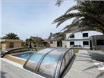 3 ch (1 lit 160x200, 2 lits 90x190 ou 1 lit 180*190, 2 lits superposés 90x190), 2 SDE, 2 WC. Cuisine aménagée, séjour/salon, DVD, matériel bébé. Terrain clos, SDJ, BBQ. Piscine intérieure chauffée à 29°C partagée avec la villa Enora toute l'année et spa privatif d'avril à octobre.